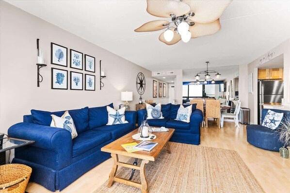 This bright and functional condo is designed for easy coastal living. After a day at the beach or pool, unwind indoors with plenty of seating and a welcoming layout.