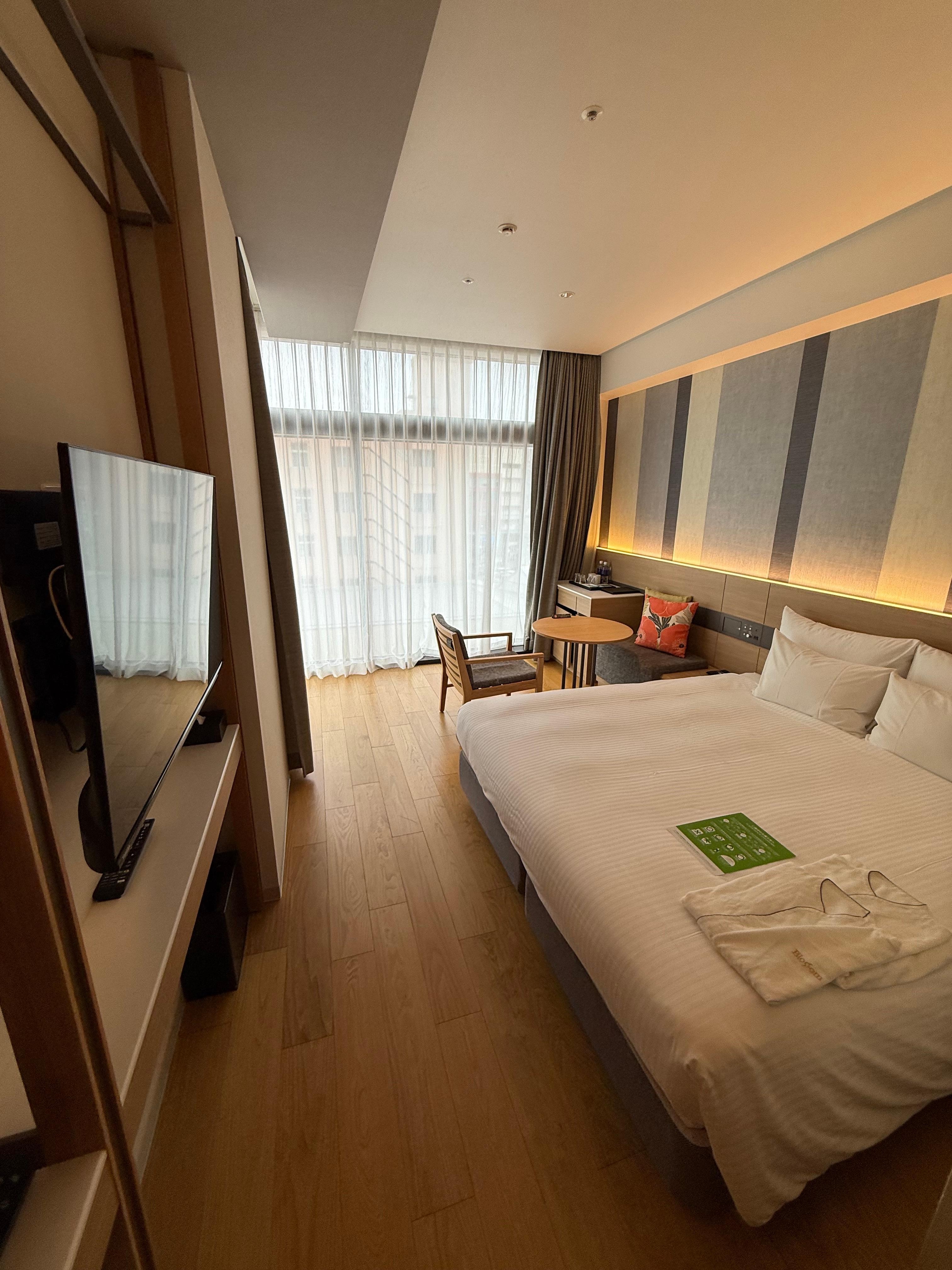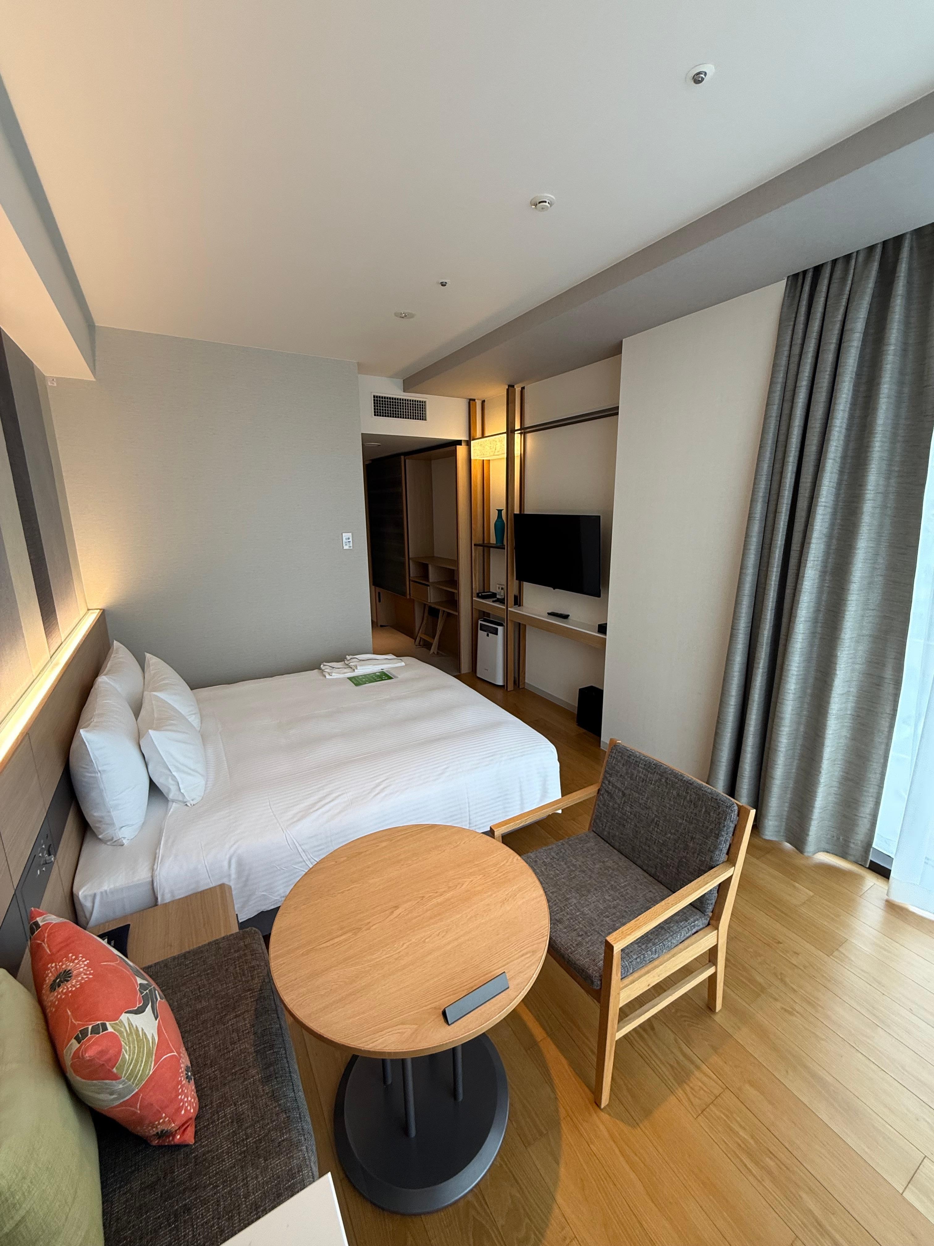 I really liked this hotel. Parking very easy and convenient, they use an elevator Parker which is a quick to drop off and pick up. Good size modern room and comfortable bed. Good size bathroom. Very short walk to Kokusai Dori and food, coffee, shopping. I tried the buffet breakfast twice and it was really good with a mix of Japanese and western breakfast options. I did a couple of runs from the hotel, national route 58 is close and provides a good running option. Overall, very happy.