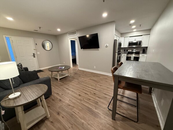 You'll enjoy a private entrance and newly furnished, comfortable two bedroom apartment.