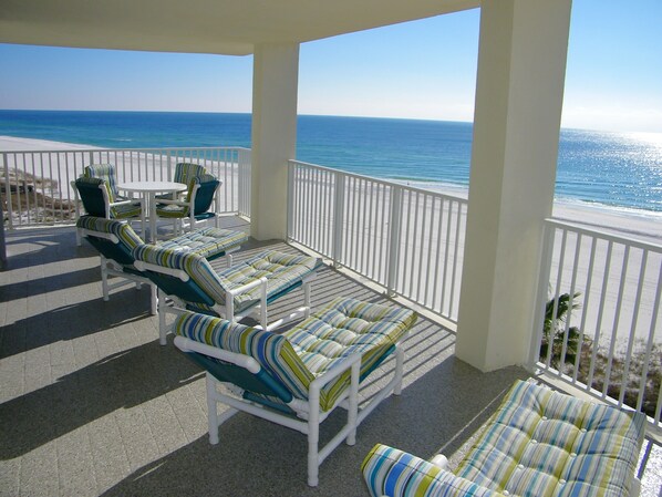Mukavasti nukkuu jopa 8 vierasta, 3 makuuhuoneen ja 2 kylpyhuoneen huoneisto on kuningas, kuningatar ja kaksi erillistä vuodetta. Olohuoneen sohva muuttuu pehmeäksi queen-size-vuodesohvaksi. Pääsy mistä tahansa makuuhuoneesta ja olohuoneesta, oleskelutila tai ruokailu 90 jalkaa ympäröivällä parvekkeella.