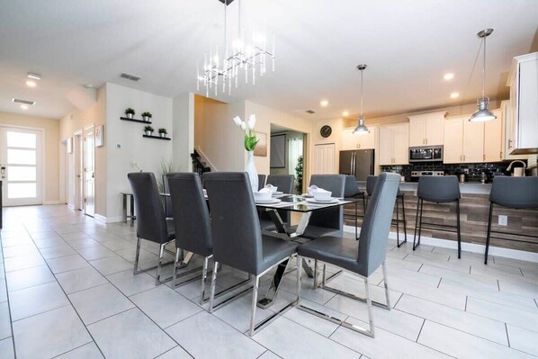 Step into our captivating 6-bedroom haven, a harmonious blend of opulence and modern design. This sanctuary comfortably accommodates up to 16 guests, ensuring a delightful stay for all. As you enter, the expansive living room seamlessly integrates with the dining area and a fully equipped kitchen, forming a central haven for culinary and relaxation delights. But there's even more to discover. The Avatar-themed game room promises endless entertainment for both adults and kids, while the Star Wars TV room adds to the excitement.
