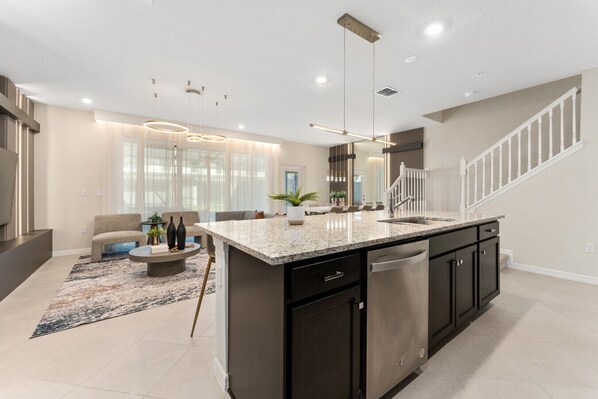 Imagine arriving at your dream vacation home, where everything is thoughtfully designed to make you feel right at home. As you step inside, you`re welcomed by a spacious, fully-equipped kitchen. The double-sided refrigerator and coffee maker are ready for whatever meal or coffee break you need. After a fun-filled day, you head to the cozy living room. Whether you’re lounging on the comfy sofa or gathering around the elegant dining table, the warmth and comfort of the space instantly make you feel at home.