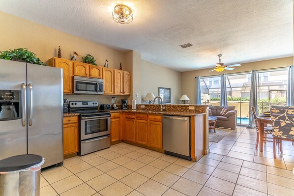 KITCHEN- Viihdyttävä, ruoanlaitto ja mahdollisuus jakaa yksityistä aikaa ystävien ja perheen kanssa on hauskaa ja nautittavaa. Keskustelua ei tarvitse jättää huomiotta, kun käytät "avoin suunnitelma" täysin varustettua ruostumatonta terästä ja graniittia ja ruokailutilaa! Vedä yksi baarituolituoleista ja vedä itseäsi kauniille graniitti-työtasoille ja katso, mitä keittiössä kehittyy.