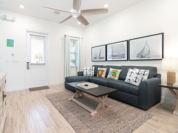 Sisään tultuaan tähän viihtyisään kaksikerroksiseen mökkiin tilavalta kuistilta löydät viihtyisän oleskelutilan, joka avautuu ruokasaliin ja keittiöön. Kick jalat ylös ja rentoutua oleskelutilassa jälkeen päivän pesut taas Margaritaville. Puoli-kylpy sijaitsee kätevästi lähellä oleskelutilaa lisämukavuuden lisäämiseksi. Kadonnut suola-ravistimesi löytyy täysin varustetusta keittiöstä, joka sisältää kaikki välineet, välineet ja keittiövälineet, joita tarvitaan suosikkiaterioidesi ja jäädytettyjen juomiesi luomiseen lomalla. Kerää ruokasalissa nauttiaksesi mukavasta perheateriasta, kenties omasta versiosta paratiisin juustohampurilaisesta.