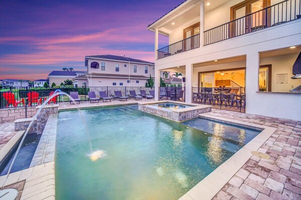 Loma ylellisyyttä tässä hiljattain rakennettu 7 makuuhuone, 7 ja puoli kylpy Reunion Resort loma-asunnon, t��ysin suunniteltu loma tarpeisiin. Kun laajennettu kannella tarjoaa ulkopuolella ruokailutila, kesäkeittiö, 8 aurinkotuoleja, ulkopuolella TV ja uima-allas kaikki näkymät 7. allekirjoitus reikä Arnold Palmer golfkenttä, Seven Eagles kerhotalo ja Grande; ei ole ihme, arvosteluja tämän kotiin ovat olleet vaikuttavia!