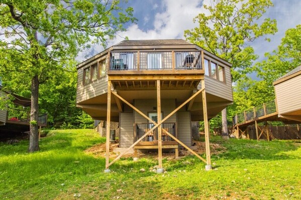Updated lakeview villa located in the heart of Osage Beach, minutes away from the Bagnall Dam strip, golf, shopping, restaurants, family fun activities, and much more. This villa consists of a full kitchen, 3 bedrooms plus a sleeper sofa, 2.5 bathrooms, and two decks all located in the Holiday Shores area with resort amenities. Our guests can enjoy an outdoor pool, splash pad, lake swim dock, outdoor fire pit, playground area, and 10'x30' boat slip is available for an additional $25/day. Perfect vacation destination to enjoy a variety of desires.