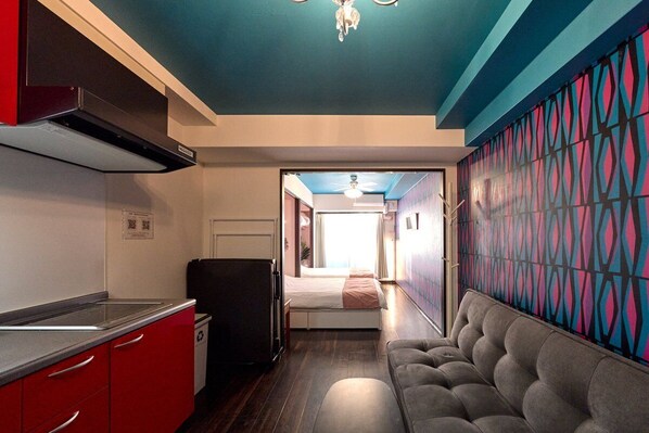 Huoneisto, jossa on keittiö ja joka sijaitsee 5 minuutin kävelymatkan päässä kohteesta Dotonbori