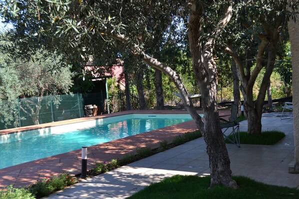 The chalet insists in the middle of a verdant garden in which an inground swimming pool of 12 x 4 meters and depths up to 3 meters. The garden features a barbecue area and a solarium area partly shaded by fruit and olive trees, in order to enjoy a sunbath or a rest in the fresh air.