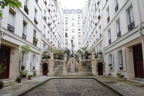 Close to shops, cafés, restaurants, Sacré-Cœur, Place du Tertre, Moulin de la Galette, Moulin Rouge and Place des Abbesses.
