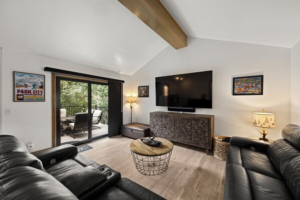 As one of the largest units in Hidden Creek, the Chalet boasts TWO spacious living areas—perfect for kids and adults to spread out and relax. A full custom remodel features 3 brand-new designer bathrooms: a walk-in shower next to the downstairs king suite, an ensuite master spa shower, and a tub/shower combo upstairs for families. Entertainment is next-level with a 75” 4K smart TV downstairs and a massive 82” TV upstairs, all paired with Sonos surround sound in every room.