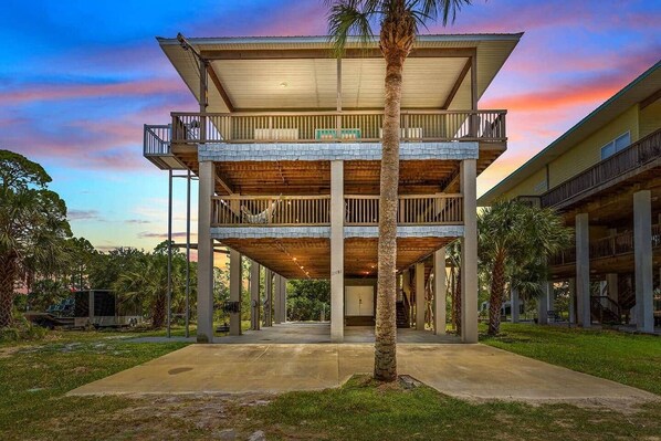 Coastal 3 bedroom 2 bath retreat with 7 beds - perfect for family & friends. Enjoy breathtaking sunsets in this golf cart friendly community. You will find an incredible mezzanine deck and easy water access from the private dock on a tidal canal. Fish, scallop, or just relax in one of the best spots around. Fully equipped with washer, dryer, coffee maker, and all linens & towels provided. This spacious home offers comfort, convenience, and unforgettable vibes for your next getaway.