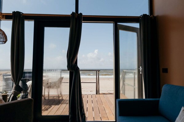 Imagine waking up to the sound of waves and enjoying breathtaking sunsets from your private terrace, this is beach living redefined at Petten! These unique Beach Houses offer a fantastic, truly beachfront experience, perfect for 2 adults and 2 children. Located directly on the fine sands of Petten, just to the left at the dune crossing exit, they offer unparalleled access to the shore. Easily accessible via a convenient gangway over the beach, your dream seaside holiday awaits. Each detached Beach House is thoughtfully designed for comfort and convenience. Inside, you'll find a well-equipped kitchenette with a refrigerator (including a freezer compartment), convection oven, electric kettle, 4-burner electric hob, and all necessary kitchenware. A cozy dining area invites shared meals, while a sleeping loft and a sofa bed provide flexible accommodation. The cottage boasts a private bathroom with a shower, toilet, and sink. For ultimate outdoor enjoyment, a spacious veranda in front of the house provides your very own private terrace right on the beach, complete with garden furniture and a parasol. The location offers both tranquility and convenience. You'll enjoy an unobstructed view of the surroundings from your quiet, beachfront setting. Parking is free and relatively close to the beach entrance, making luggage and grocery transport easy. Plus, you're just steps away from Beach Pavilion Zee & Zo, where you can indulge in breakfast, lunch, or dinner with stunning views. All in all, these Beach Houses provide every ingredient for a unique and memorable beach holiday, inviting you to experience seaside living firsthand.