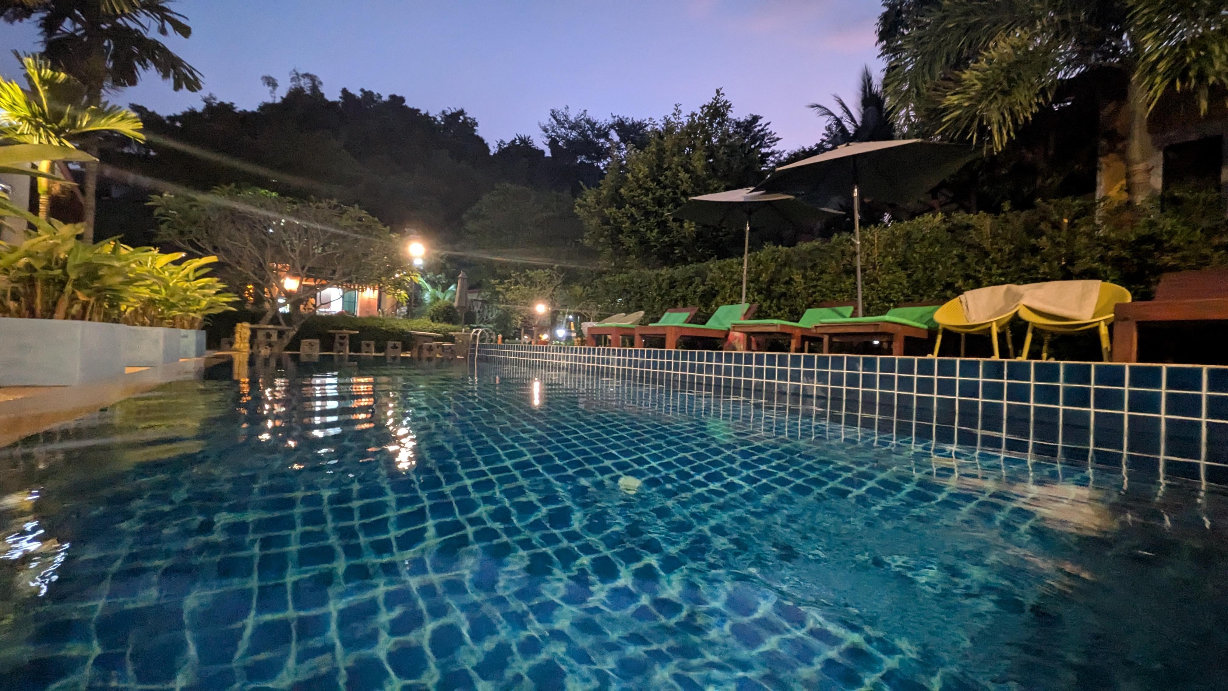 Hotelli, jonka tarjontaan kuuluu ulkouima-allas ja ravintola