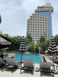 Kyllä, tässä majoituspaikassa on ulkouima-allas ja lastenallas. Uima-allas on käytettävissä klo 7.00–19.00.