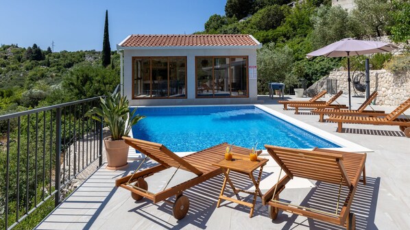 Huvila, jossa on yksityinen uima-allas ja keittiö