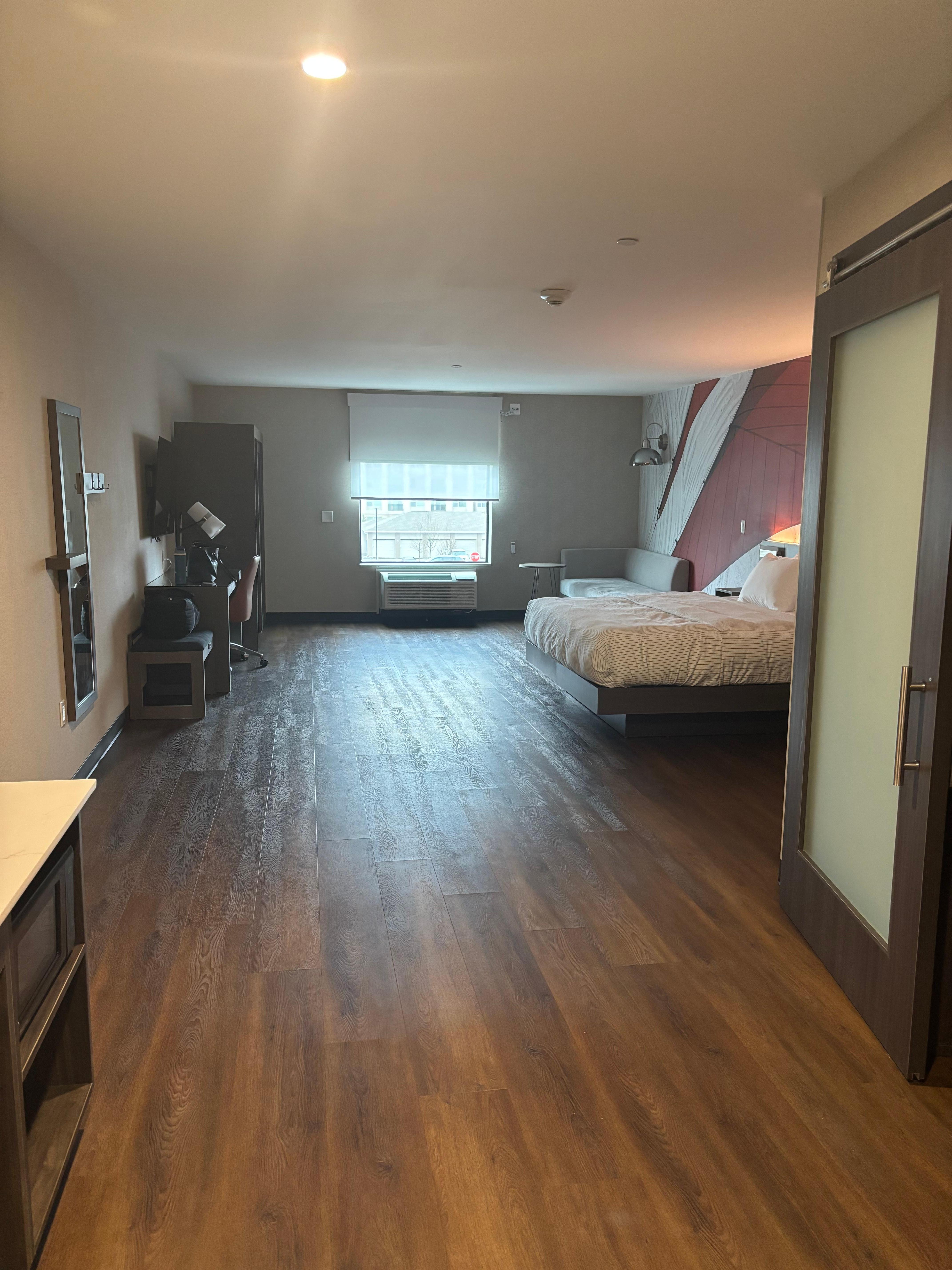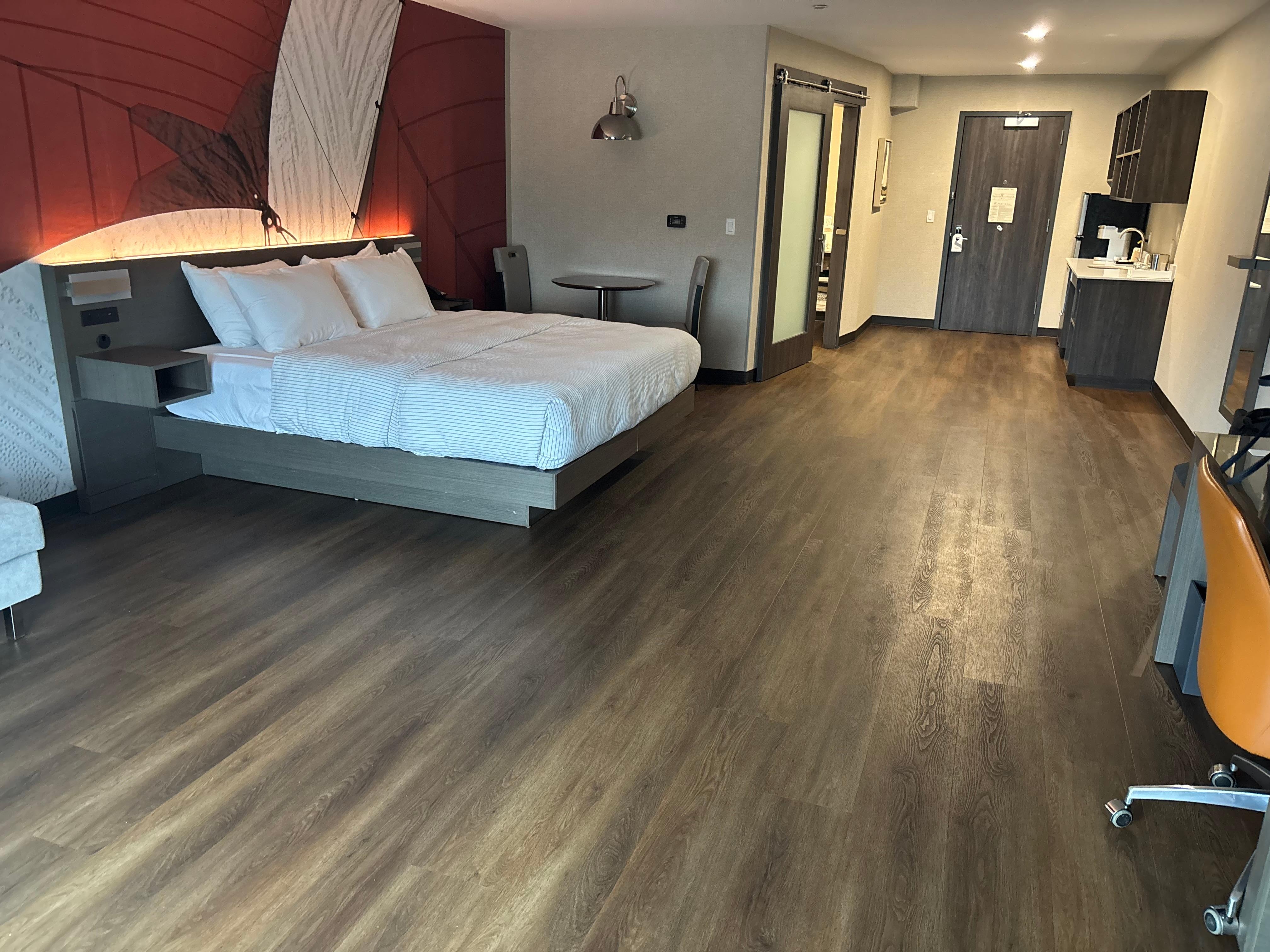 The room was gorgeous and spotless. Comfortable bed plenty of convenient storage. The front desk staff was outstanding: polite accommodating and clearly dedicated to the job. The bar was not open when I was there and there was no pool but it was ok, I did have a tub in my room.