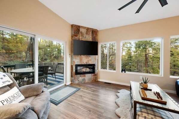Welcome to your peaceful mountain retreat, perfectly tucked in the heart of Prescott National Forest and just 12 minutes from the quaint downtown. Surrounded by towering pines and sweeping mountain vistas, this serene escape is perfect for those seeking tranquility or adventure. Whether you're starting your day with coffee on the porch, hiking scenic trails, or winding down by the fire pit under a canopy of stars, this home blends natural beauty with modern comfort to create your perfect getaway