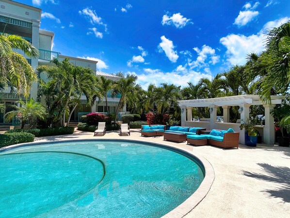 The perfect large condo, and only 3 minutes from the famous Grace Bay Beach! Located in the exclusive Leeward area, a gated, secure residential area where all the major luxury villas are. The beach is a short stroll away & the main Grace Bay shopping / resort area is 5 minutes by car. The condo boasts a large pool, stunning modern finish and appliances.