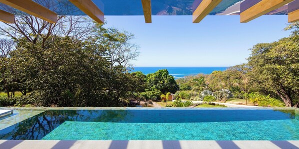 This modern luxury sanctuary looks over a manicured tropical garden bursting with local flowers, plants and trees to an unobstructed view of the Pacific ocean and has space for everyone to gather or escape, whatever you need at the moment. Relax and let your local caretakers, Ingrid and Ivan, help you with everything from activity planning, local tips, shopping for/preparation/serving/clean up of breakfast and dinner upon request (groceries paid by guests) and cleaning service.