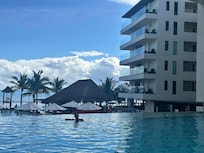 Rannalla sijaitseva ylellinen hotelli, jossa on 4 ulkouima-allasta
