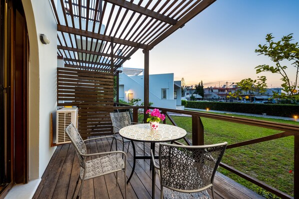 A spacious private veranda equipped with a table and chairs offers great views!