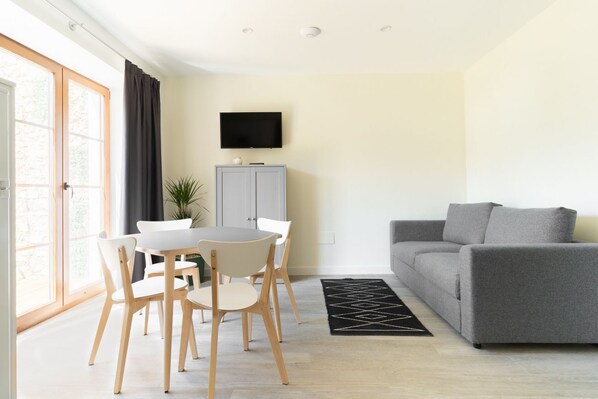 From the living-dining room you can access the private garden, with tables and chairs to enjoy a lunch or dinner.