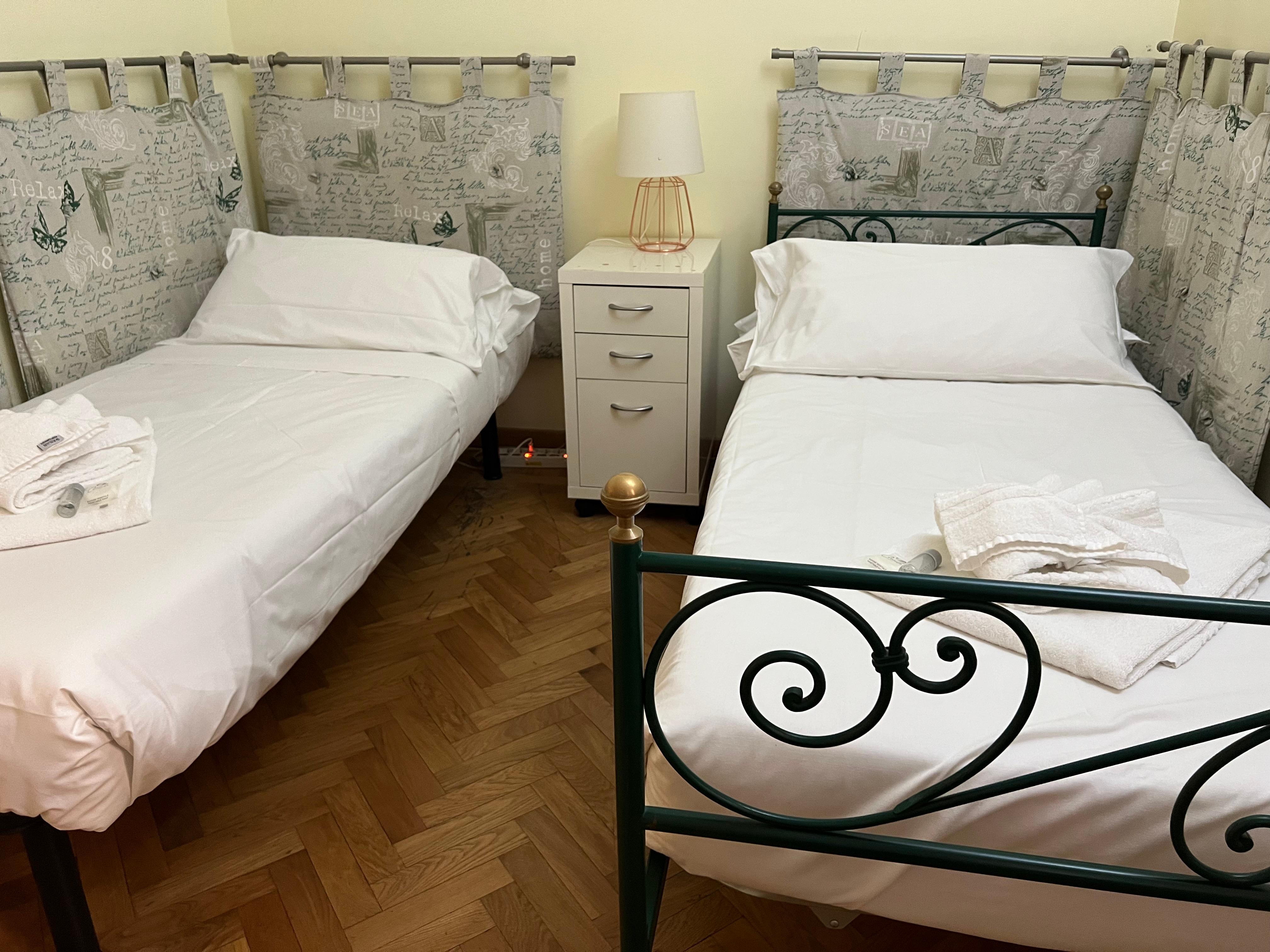 The location of the property is so convenient. With a lot of polizia presence, you will feel safe as well. The property is very well maintained and clean. There was enough hot water for the shower. The beds were nice and clean. The kitchen was well-maintained with a working and clean stove, refrigerator and other appliances. The bathroom is also clean and providing multiple toilet paper and washer soaps should you decide to wash is very much appreciated. All the notes and guides provided have been very helpful in sorting out the trash. The rooms were nicely decorated with pictures of rome. the ceiling art in the master bedroom is also very nice.