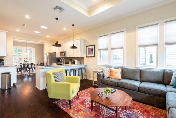 Kun olet uinut takaisin Riverwalkilta, siirry tähän hiljattain rakennettuun kotiin ja ihmettele viehättävää paikallista sisustusta ja kauniita tilavia huoneita! Lepota väsyneet jalat sohvalla tai nojatuoleissa katsellessasi taulu-TV: tä olohuoneessa. Rentoudu takaterassilla ja aidatulla nurmikolla, kerro hauskoista suunnitelmistasi, jotka koskevat San Antoniosi vierailua aamiaisella keittiön saarella tai ruokapöydässä. Kävele Dignowity Meatsiin nauttiaksesi herkullisen aterian tai juoman tai pilailemalla maukkaan välipalan keittiössä uusilla ruostumattomasta teräksestä valmistetuilla laitteilla. Kävele alas Yeyan antiikkia ja omituisuuksia etsimään piilotettuja aarteita ja jatka alas nauttimaan ateriaa Cherrity Bar -baarissa, jossa voitot menevät valitsemaasi hyväntekeväisyysjärjestöön. Vuokrata polkupyöriä ja skoottereita ja käydä matkalla Hays Bridgelle, katsella upeaa auringonlaskua upean näkymän yli. Päivän päättyessä jäädä viihtyisiin makuuhuoneisiin yöunen vuoksi.