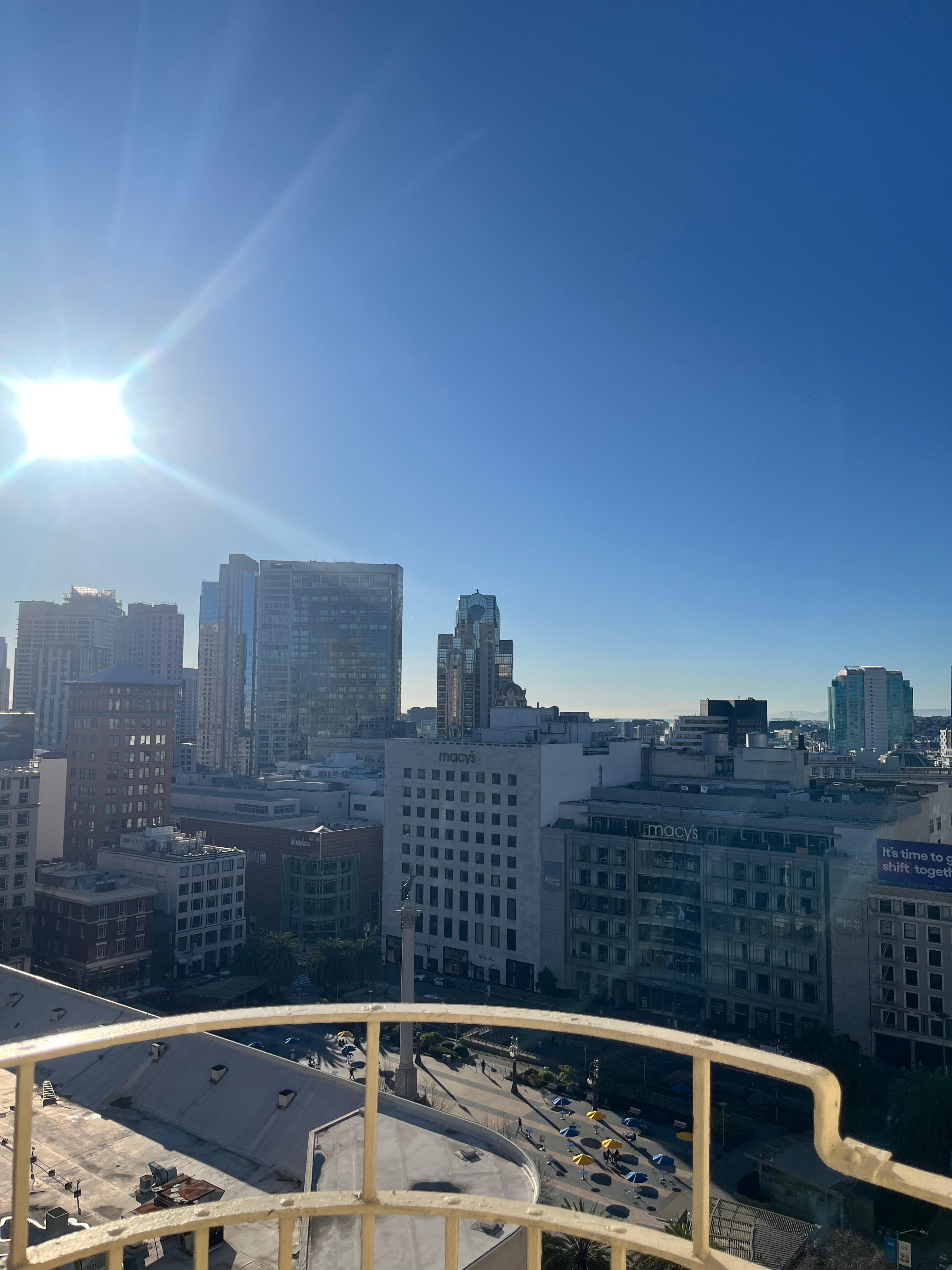We had a great stay at the Chancellor. The staff was very friendly. The location was amazing. We could jump on the cable car right out front. Sears Fine Foods was right next door for a Swedish pancake breakfast. We recommend staying here.