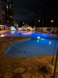 Kyllä, tässä majoituspaikassa on ulkouima-allas ja lastenallas. Uima-allas on käytettävissä klo 10.00–19.00.