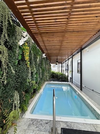 Kyllä, tässä majoituspaikassa on ulkouima-allas. Uima-allas on käytettävissä klo 8.00–22.00.