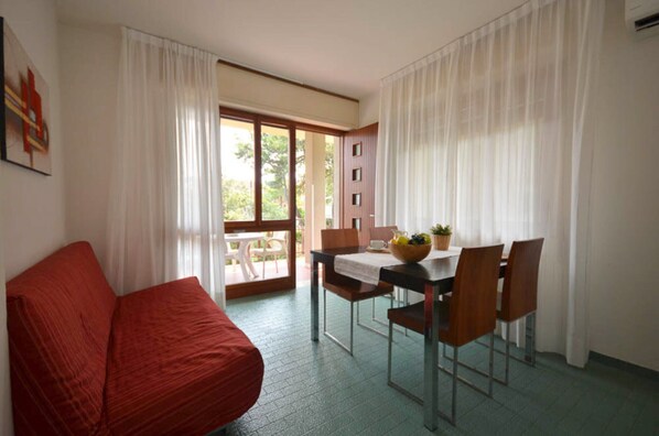 Huoneisto, jossa on keittiö ja joka sijaitsee 8 minuutin kävelymatkan päässä kohteesta Bibionen ranta