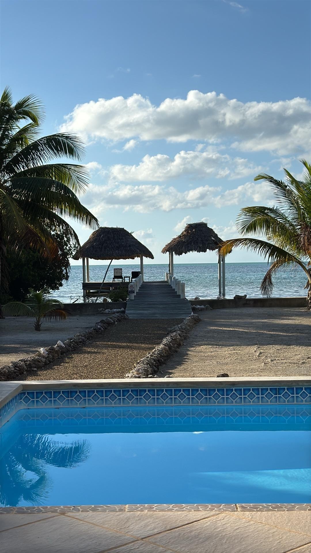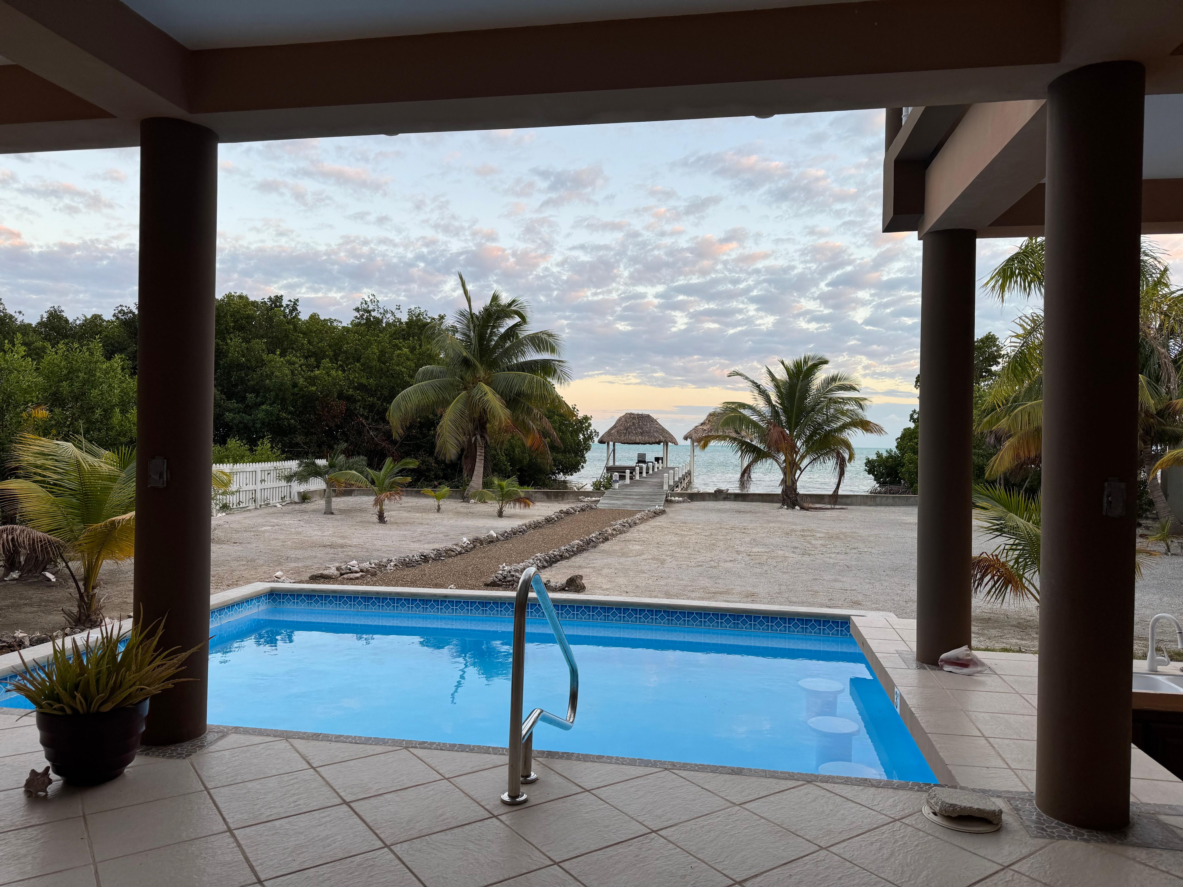 Aivan ulkopuolella suuri katettu terassi on puoli kylpyamme ja pieni yksityinen uima-allas jäähtyä kuuma trooppinen päivä. Uima-altaassa on uimapaikka baari ja grilli grilli. Vieraat toimittavat omaa puuhiiltä. Myös laiturin lopussa on kaunis Palapa. Tämä on täydellinen paikka rentoutua ja nauttia upeasta näköalasta sekä erilaisista kaloista ja linnuista. Jos olet aikaisin nouseva, voit tuoda esiin aamukahvin ja katsella kalastajia menemällä merelle saaliin päivittäiseen tuoreeseen kalaan ja myymään ravintoloita tuohon illalla.