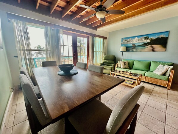 Tämä on suuri kolmen makuuhuoneen / kahden kylpyamme 1540 neliömetrin uusittu yksikkö. Makuuhuoneessa on oleskelutila ja oma veranta, josta on näkymät uima-altaalle, rannalle ja Karibialle.