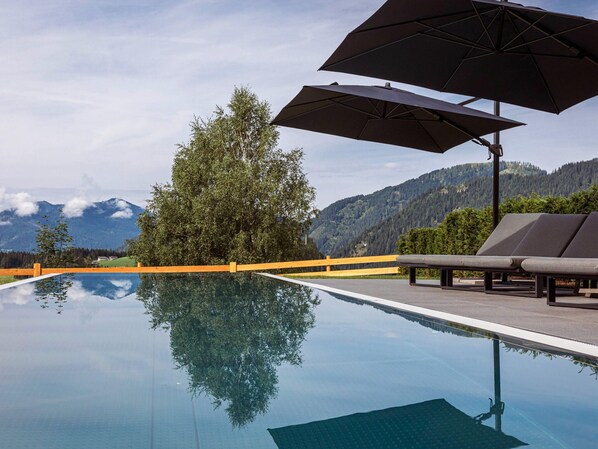 Huoneisto, jonka tarjontaan kuuluu ulkouima-allas ja sauna