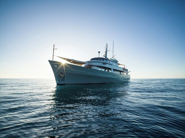 Relax on a stunning classic super yacht in a soothing waterfront setting