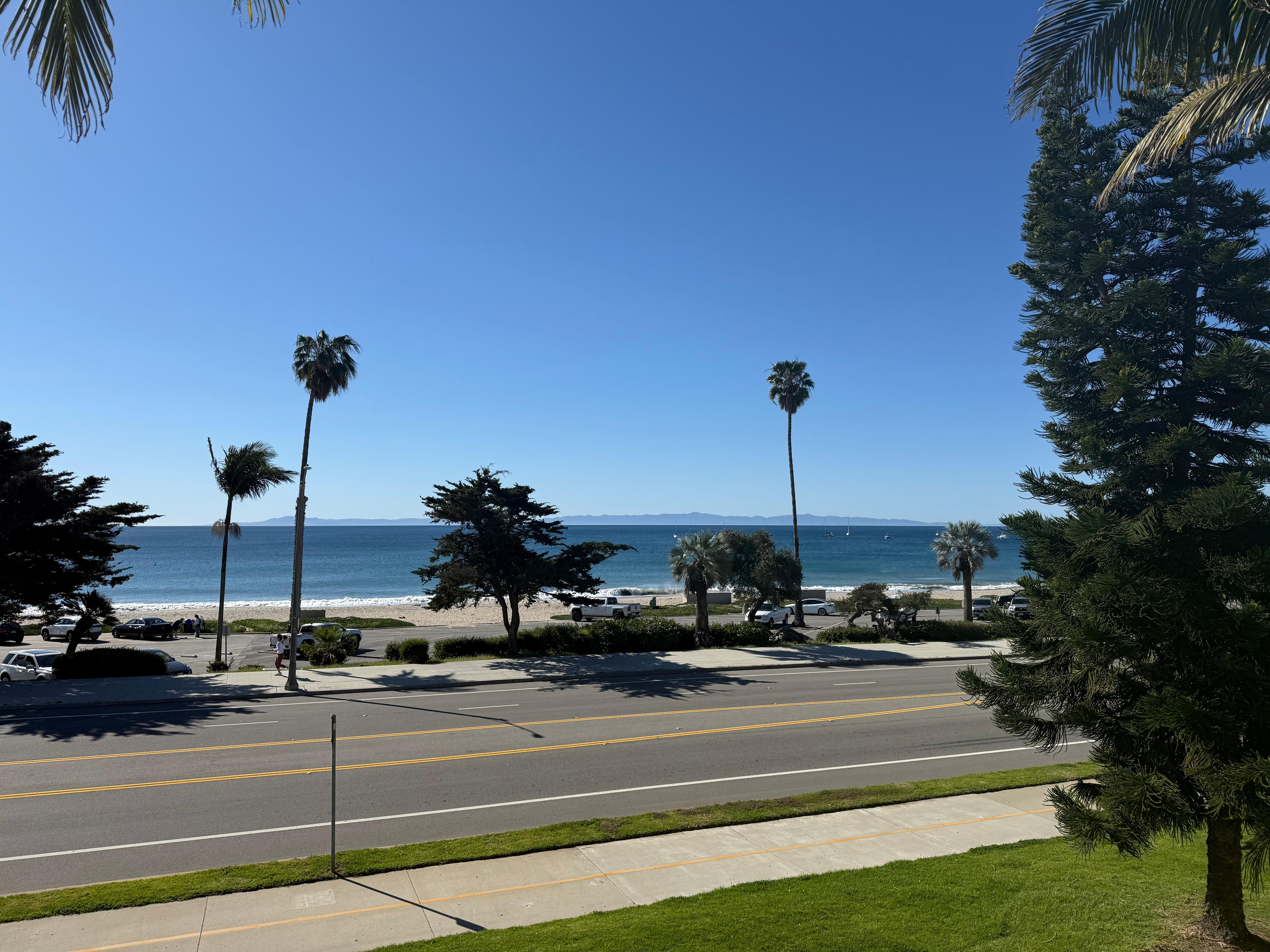 Ocean view room and relaxing. Quiet room with a comfortable bed. We had a great time with our adult kids walking to the beach. About 30 minutes walk to the pier and 40 minutes to farmers market on the state street. Great view of the beach from the lobby and the pool.