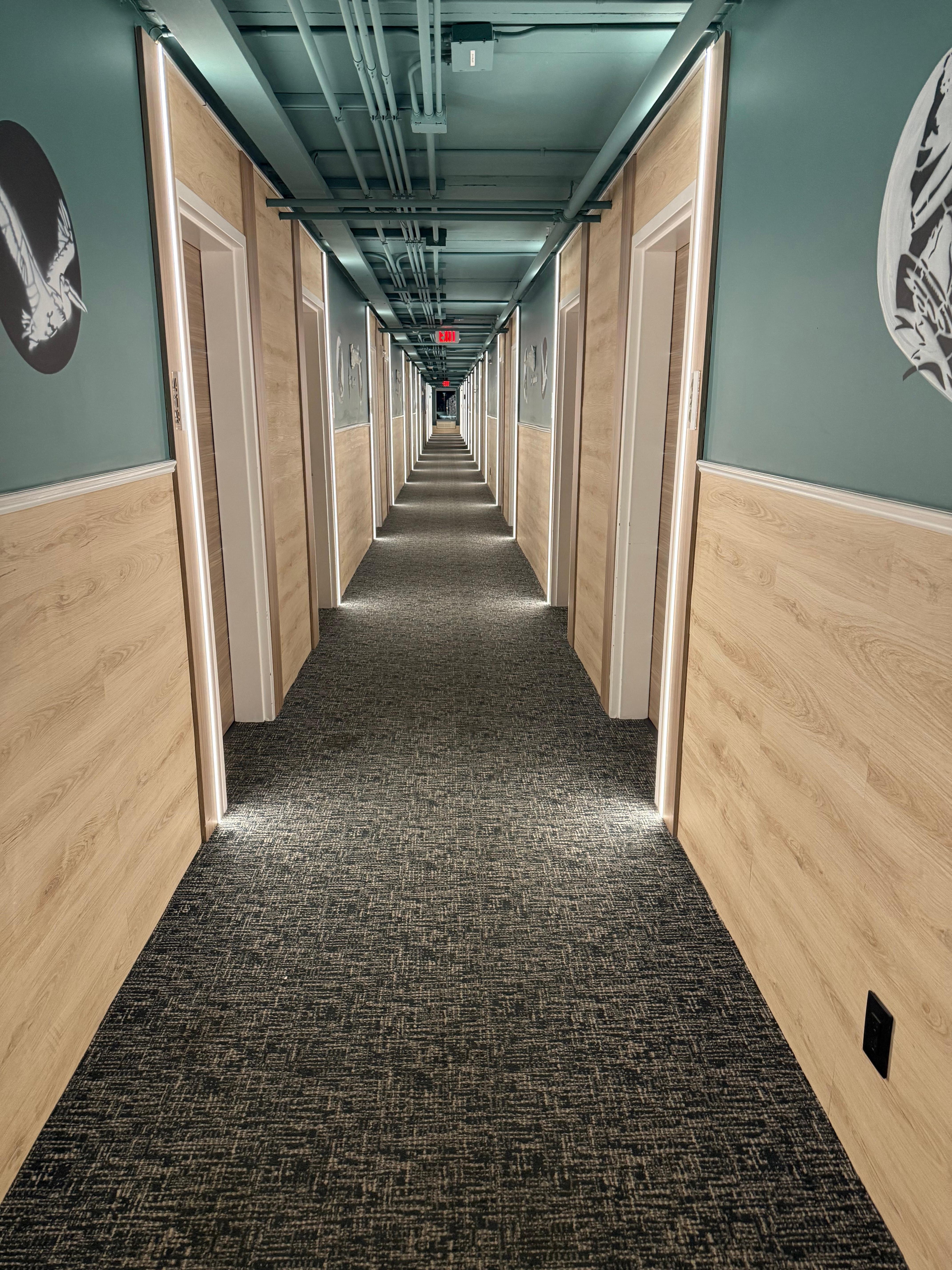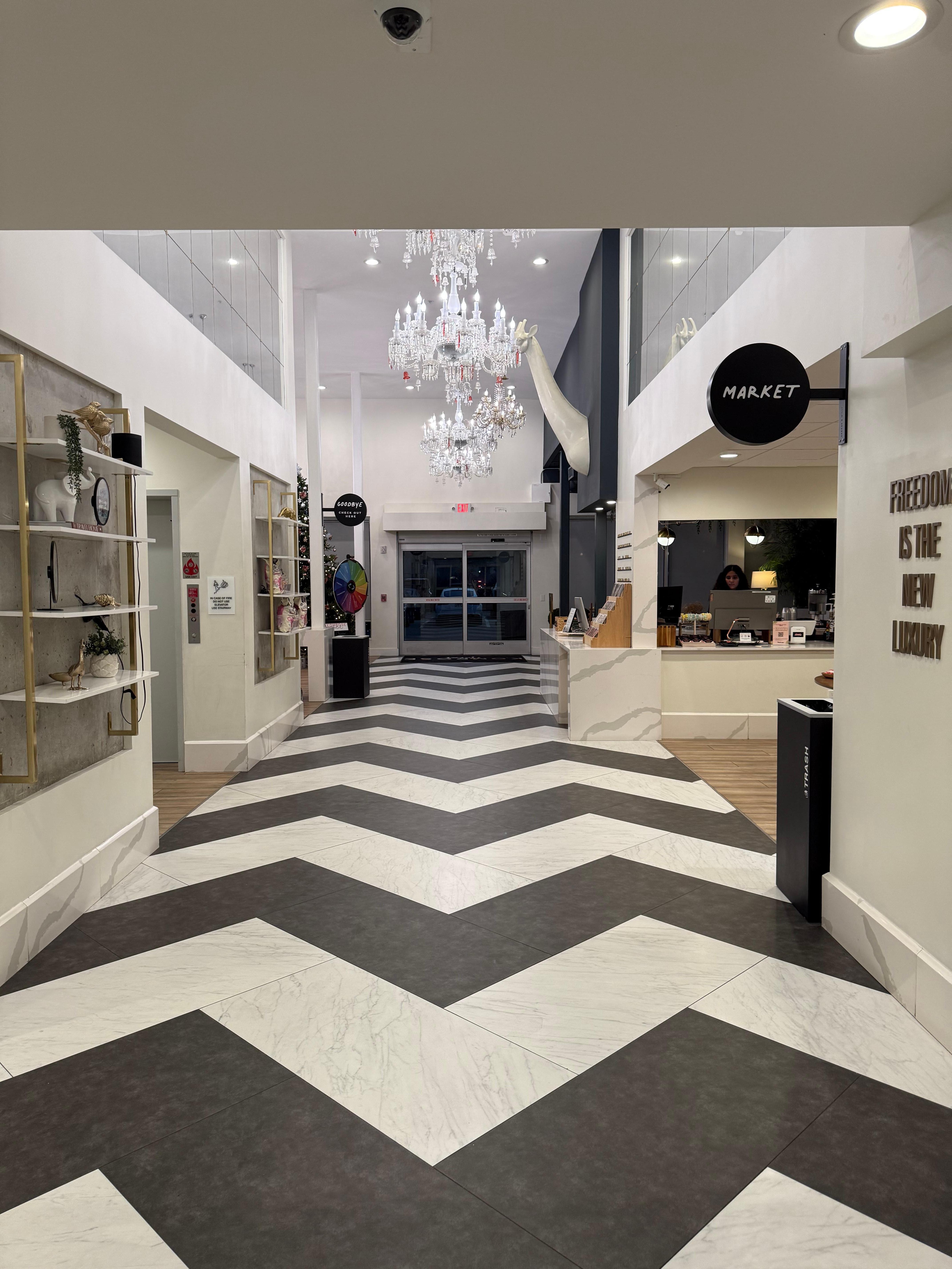 Hotelli, jonka tarjontaan kuuluu ympäri vuorokauden auki oleva kuntokeskus ja ympäri vuorokauden auki oleva business center