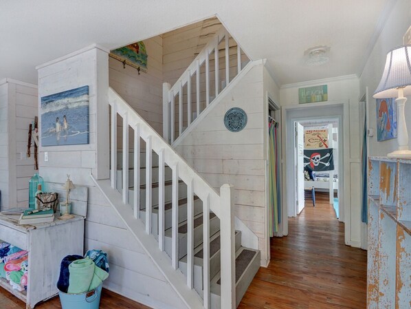 Just down the hall, you'll find the Pirate's Quarters outfitted with bunk beds and cool nautical decorations your kids will love. The nearby bathroom features a tub-shower for clean-up after long, fun-filled days.