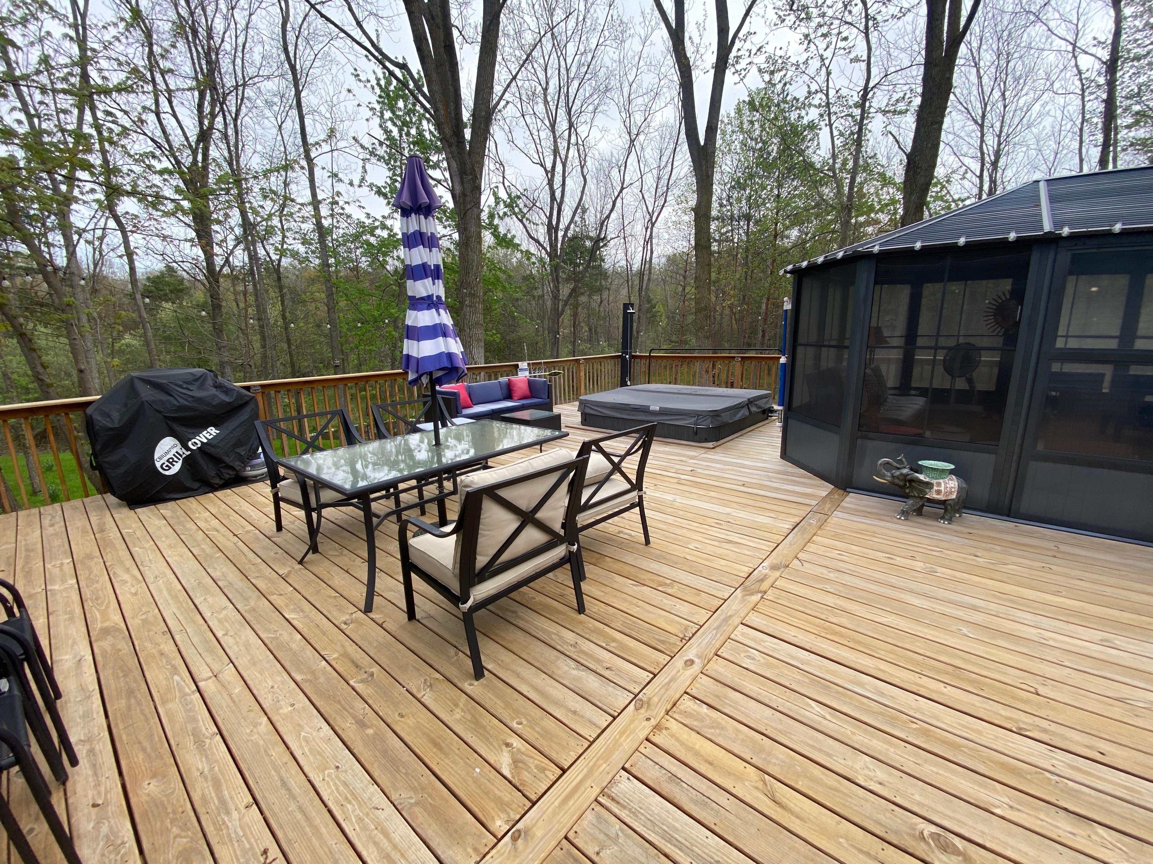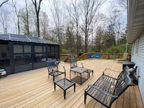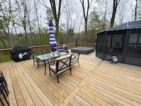 This home is modern and inviting. We appreciated the cleanliness, the ability to charge all our devices in all areas of the house, comfy beds, electric fireplace, Bluetooth sound bar, 1/2 bath off the kitchen, nice size island in the kitchen to lay out food with seating for 6, and the amazing outdoors area. The deck is huge with a screened in area with plenty of seating. We didn’t use the fire pit but it was situated in the center of some huge oaks and there was plenty of fire wood. The hot tub was amazing. Six of us fit comfortably. The temp went up to 104 although we were comfortable at 100. Tip: start it early since it takes a while to heat up. We had a couple of questions for the host and received responses within minutes. We really enjoyed our stay and were talking about when to come back before we even left.