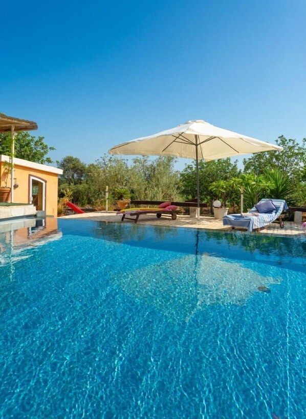 Huvila, jossa on yksityinen uima-allas ja keittiö