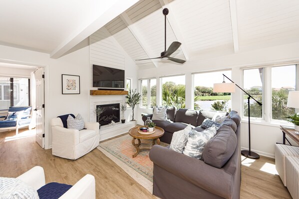 Beautifully renovated Sealoft complete with lagoon views from any of the 3 porches. This free standing Villa has 2 bedrooms, 2 baths and an additional loft space used as the 3rd bedroom. The chef ready kitchen is fully stocked with everything you'll need to prepare meals, including double convection ovens, work station sink, quartz countertops and oversized refrigerator. Cozy family room with plenty of seating plus electric fireplace, oversize streaming capable 55 inch TV & sound bar. Master bedroom with king bed, bathroom, TV and private porch..a perfect spot for morning coffee with views of the lagoon and golf course. The secondary bedroom is a great place to relax after the beach with a queen size bed, crisp linen sheets & streaming capable TV. The upstairs loft has 2 twin beds, streaming capable TV & sit down Pac man/Galaga game for added entertainment on those rainy days . Outside an additional rooftop porch is a great spot to read a book, stare at the stars with the provided telescope, or relax with a glass of wine. Within walking distance to the beach and steps away to the private community pool, Seabrook Island is a gated beach community with equestrian center, tennis courts, 2 golf courses, beach front pools and restaurant. . Additionally, The Lake House has a fitness center, outdoor pool, playground, basketball court, lake & indoor pool. Within 10 minutes to Freshfields Village for retail shopping, groceries, restaurants and shopping and located only 40 minutes to Historic Downtown Charleston, this home is truly the perfect Island getaway!