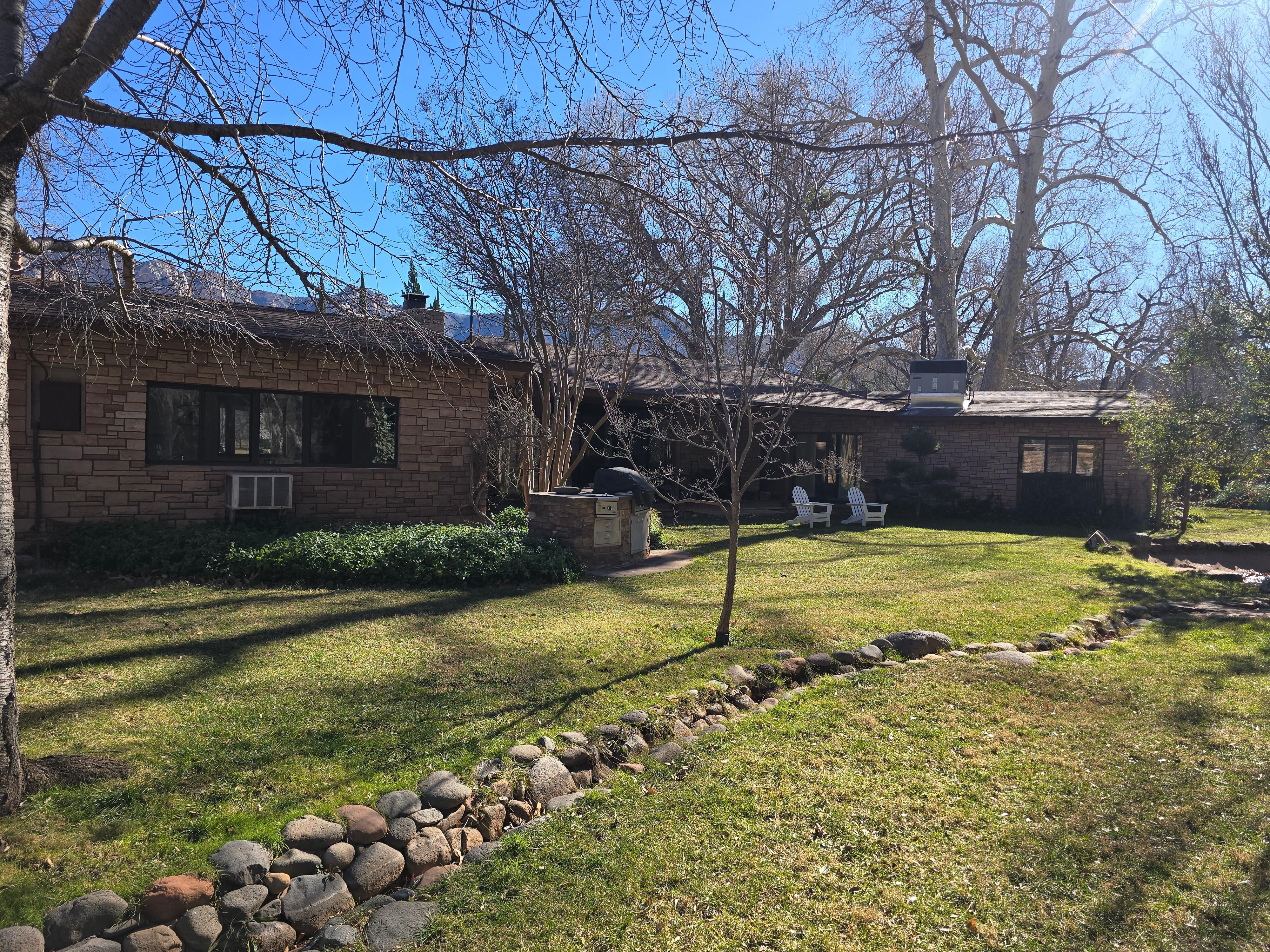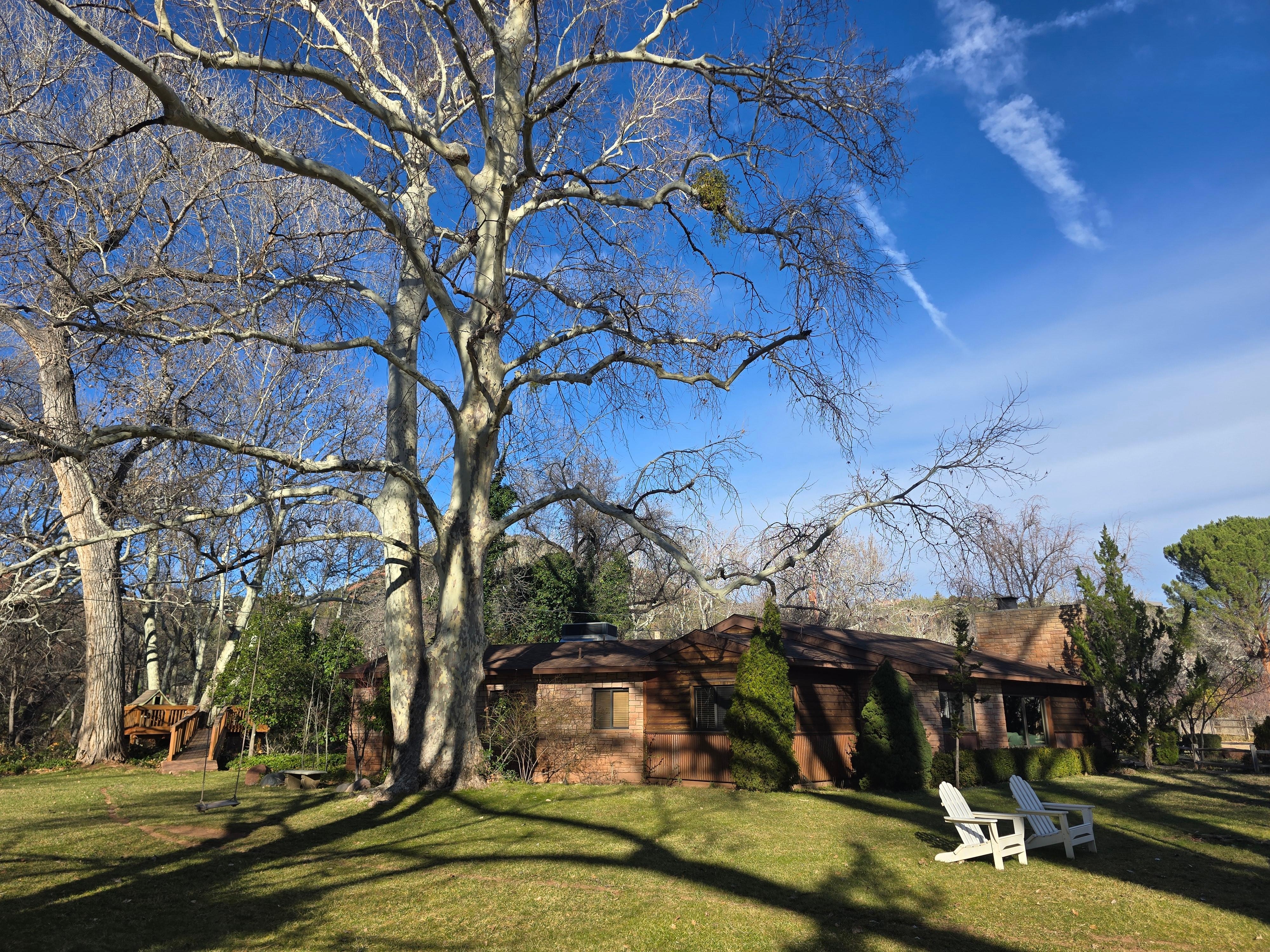 Omaisuus on laaja rehevä ruoho pelata ja vaeltaa ympäriinsä. On lasten leikkirakenne sekä trampoliini. Punainen kallio polku johtaa alas puroon pulahtaa, ohittaa kivet, kalaa tai yksinkertaisesti lukea hyvää kirjaa. Ympäröi itsesi rauhassa kannelta, joka on rakennettu puihin, ja näkymät upealle Oak Creeklle. Nauti hedelmätarhasta, jossa on omena-, persikka-, aprikoosi-, päärynä-, luumu-, viikunapuu- ja kirsikkapuita sekä karhunvatukoita ja ruskottavia rypäleitä. On ulkona BBQ ja kivi takka-on nauttia viinipullon, kun lapset tekevät s'mores. Usein iltahämärässä huomaat hirvieläinten hedelmää, joka on pudonnut puista. Voit kävellä tai pyöräillä ravintoloihin ja kauppoihin Tlaquepaque tai Hillside, joka on suoraan yli 179 sisäänkäynnin meidän naapurustossa, ja tarjoaa tunnettuja ostoksia ja asuu kollektiivinen ravintoloita kaikkiin erottava maku, taidegalleriat tarjoaa monipuolinen taideteos, veistos, keramiikka ja koruja putkimyymälöiden lisäksi, jotka tyydyttivät enemmän kuin niiden kengät, muodin ja kodin sisustus. Tuo tai vuokrata pyöriä hyödyntämään Sedonan henkeäsalpaavia pyörätiet. Maaliskuun puolivälistä marraskuun puoliväliin asti voit katsella paria pesimähaikaroita, jotka palaavat vuosittain nostaakseen uuden broodin yhdessä valtavista Cottonwood-puista.