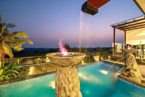Huvila, jossa on yksityinen uima-allas ja parveke