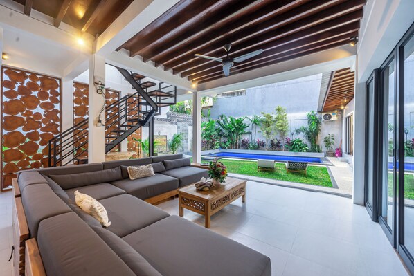 Huvila, jonka tarjontaan kuuluu ulkouima-allas ja joka sijaitsee lähellä kohdetta Seminyakin ranta
