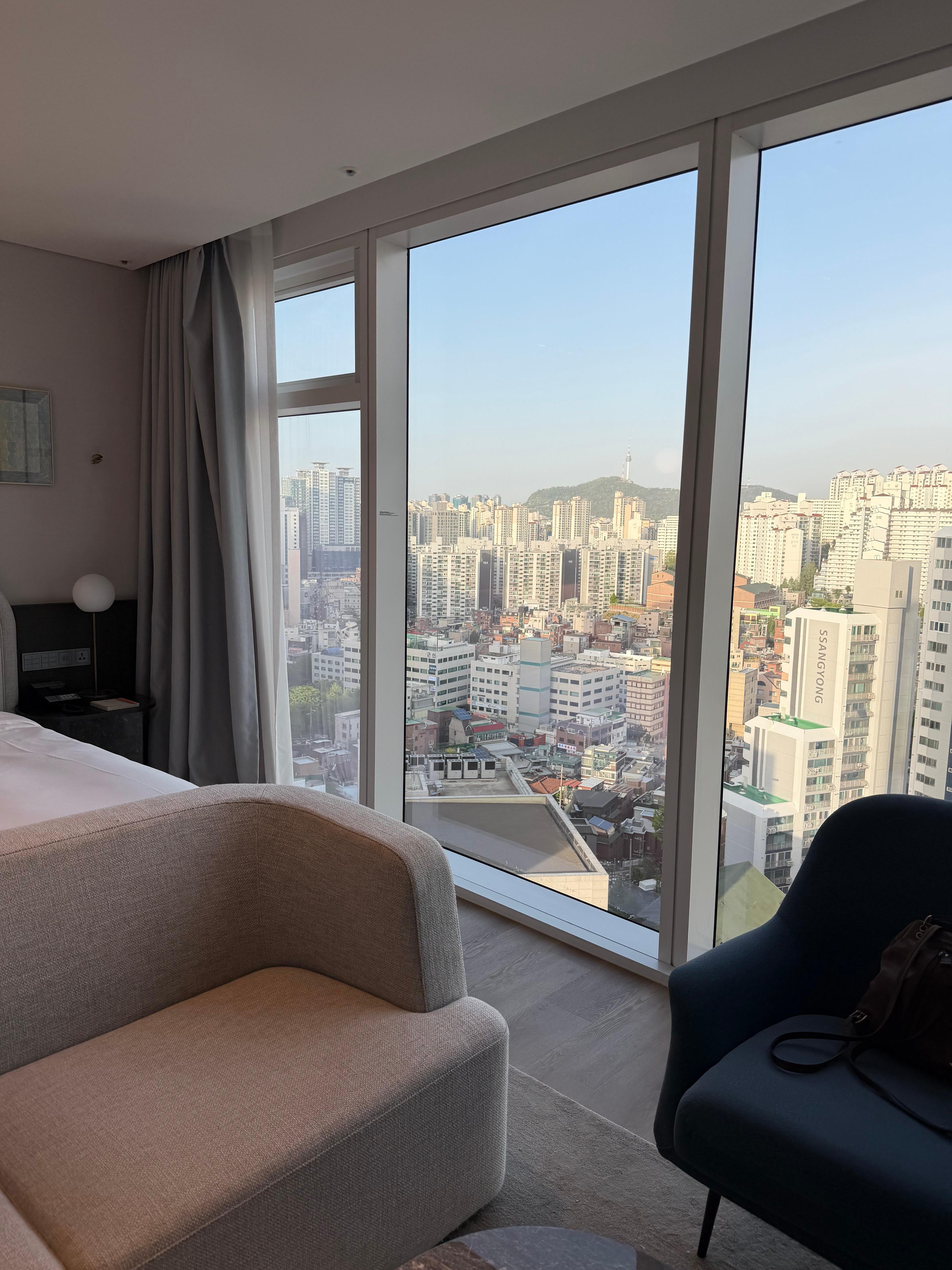 Absolute incredible stay. Staff is super friendly and helpful. The room is very modern with an amazing view of the Han river (windows are floor to ceiling which makes the room super bright). Loved the outdoor and indoor pool, the water temperature was so nice that I could even use the outdoor pool on a cool rainy day!