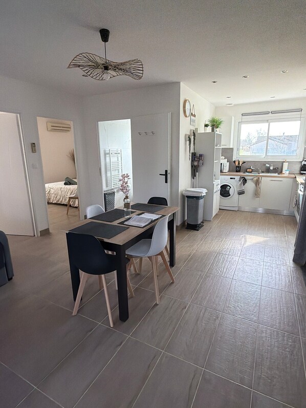 This family home, ideally located just a 3-minute walk from the village center, comfortably accommodates 6 guests. The house is fully fenced, giving you independent access for a peaceful stay.