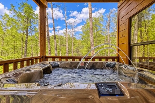 Alemmalla tasolla on pelihuone, jossa on biljardipöytä, arcade-peli, pienen ilmakiekon pöytä, taulutelevisio ja futon. Pelihuoneen vieressä on lisäksi makuuhuone, jossa on queen-size-vuode ja taulu-tv. On yhteinen kylpyhuone, jossa on yhdistetty kylpyamme ja suihku. Tässä on pesukone ja kuivaaja. Alemman tason kannella, nauttia patio asetettu kuunnellen luontoa, joka ympäröi sinua tai pitkän päivän nähtävyyksien tai vaellus, nauttia kupliva kylpytynnyri kun liota kaikki huolet pois.