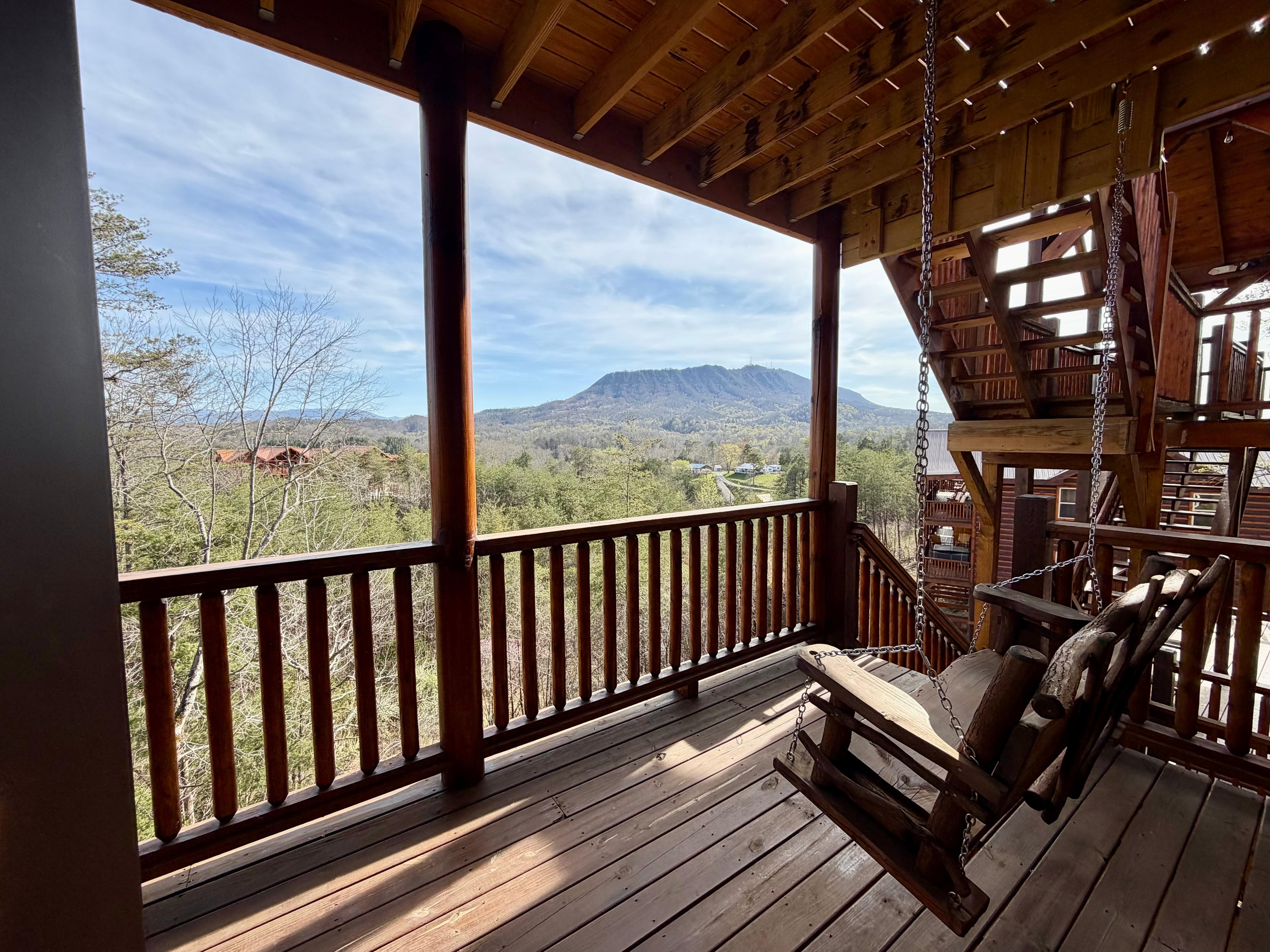 Private door leading to the balcony directly from the bedroom for Amazing Mountain Views of the Sunrises and Sunsets from your balcony swings and rocking chairs