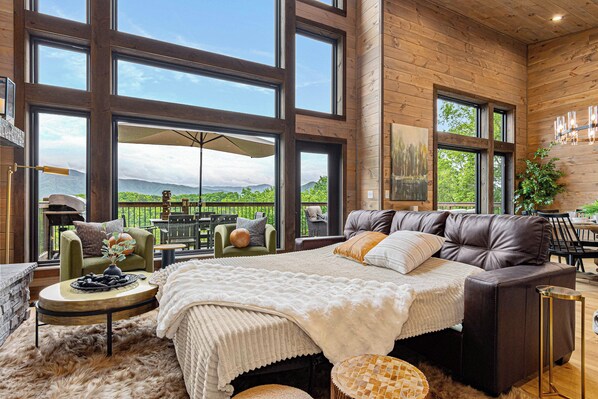 • Top Deck: Propane firepit, grill, outdoor dining options, and seating to enjoy the panoramic views